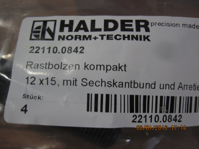 Wir verkaufen Halder - 22110.0842 Rastbolzen kompakt mit Sechskantbund und Arretierung in Deutschland für wettbewerbsfähige Preise!