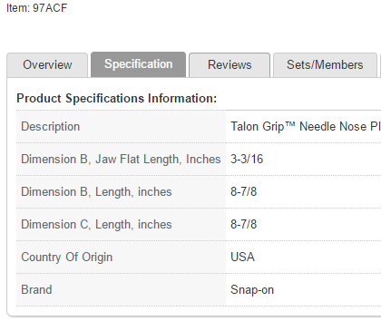 Sie bekommen Hilfe von unseren Experten für Verkaufspreise von Snap on - 97ACF 8IN LONG NOSE PLIERS in Deutschland.