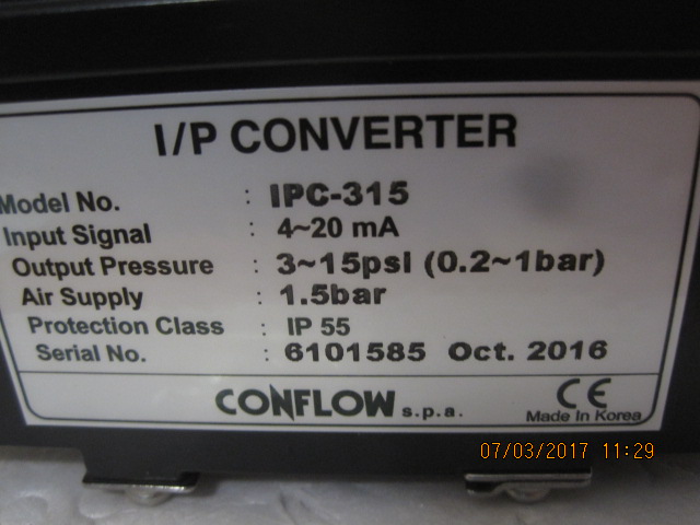 Grab the best offer for CONFLOW - IPC315 Electro-pneumatic. converter in Germany.With each day we gain more and more experience and that's why we are able to satisfy your needs for spare parts.