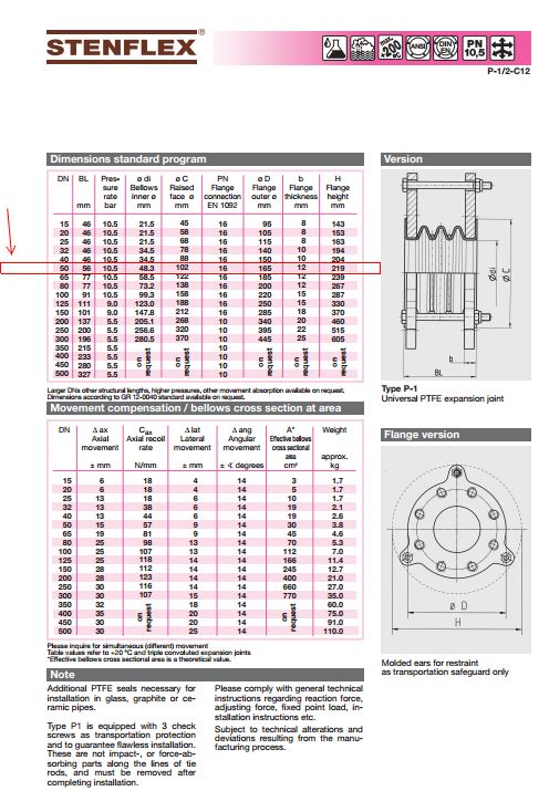 Our company gives competitive pricing for Stenflex - Type P-1 PTFE-Kompensator in Germany.